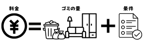 ※家電リサイクル品(エアコン・テレビ・冷蔵庫・洗濯機)、産業廃棄物、処理困難物は別途料金がかかります。